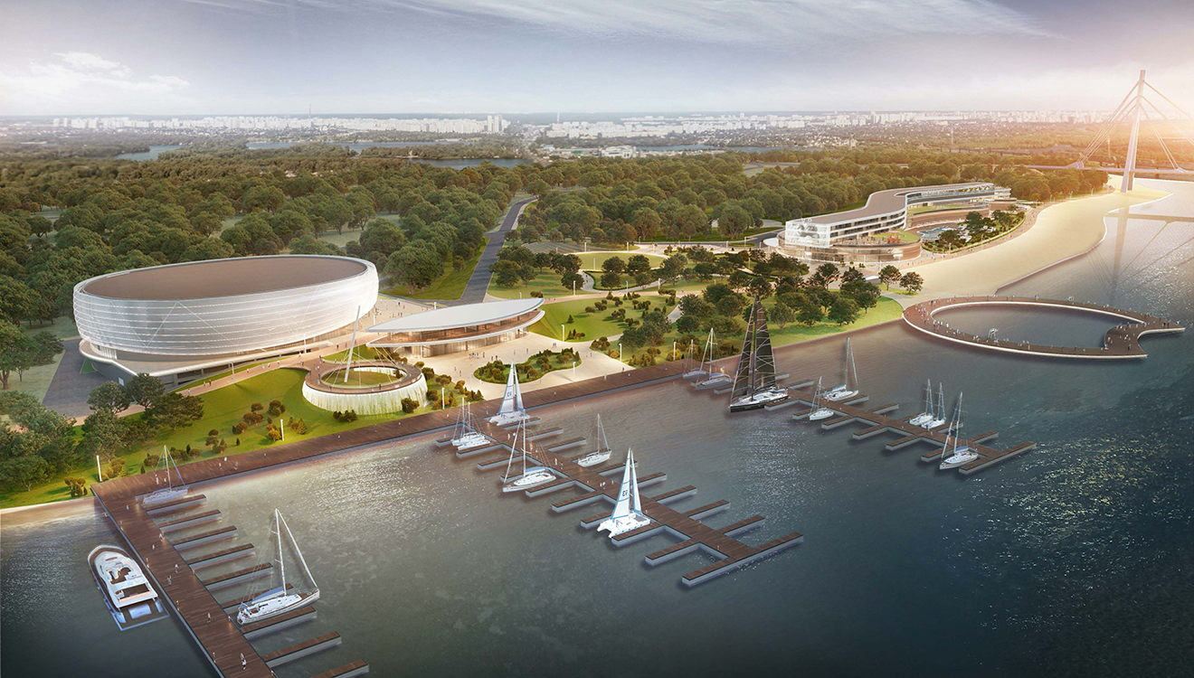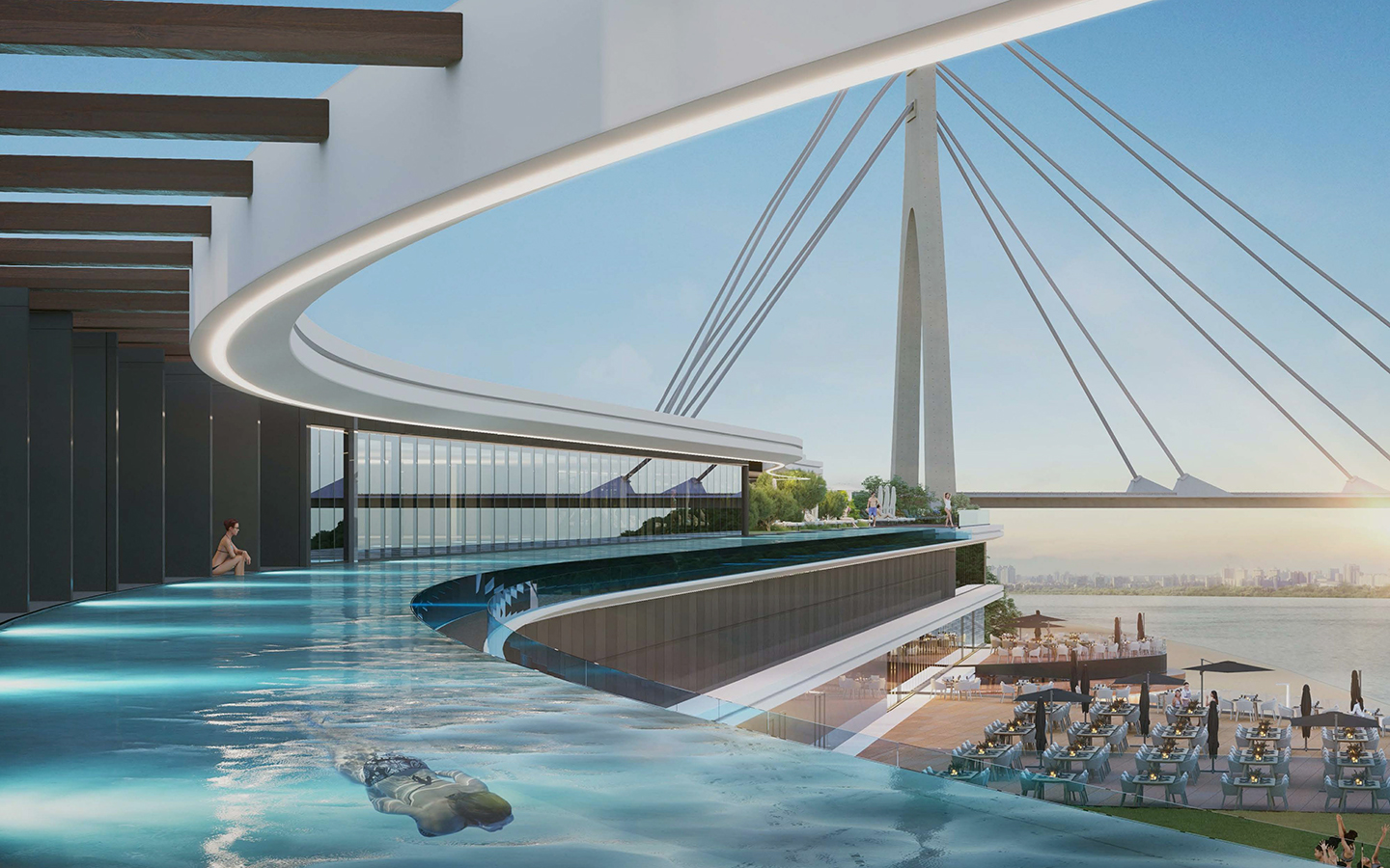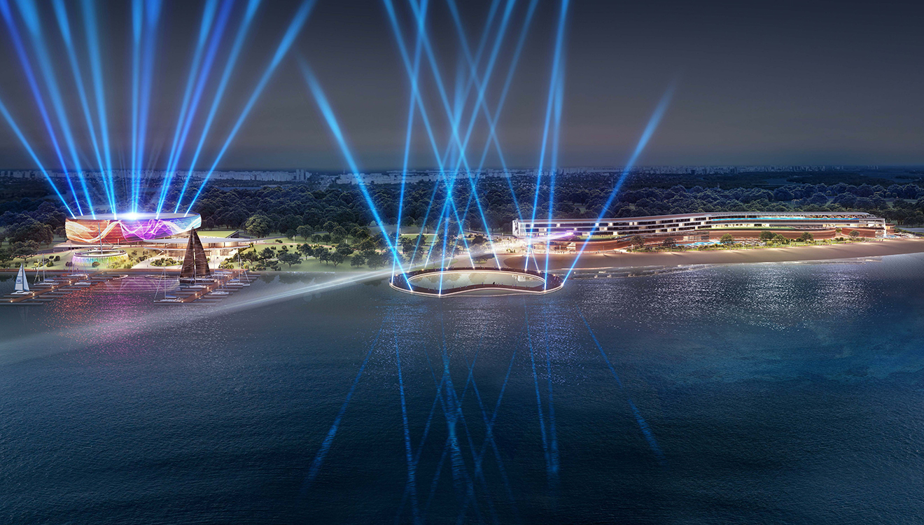 The City Entertainment Resort is a high-quality, comfortable building that meets modern requirements. We were inspired by southern cities and the riverbank location. All the facilities are made in the same style. They have smooth shapes, light facades, and a southern mood. We tried to create an atmosphere of rest and relaxation. The park area will feature walking alleys, a park on the water, stands where you can watch open-air events, and more.