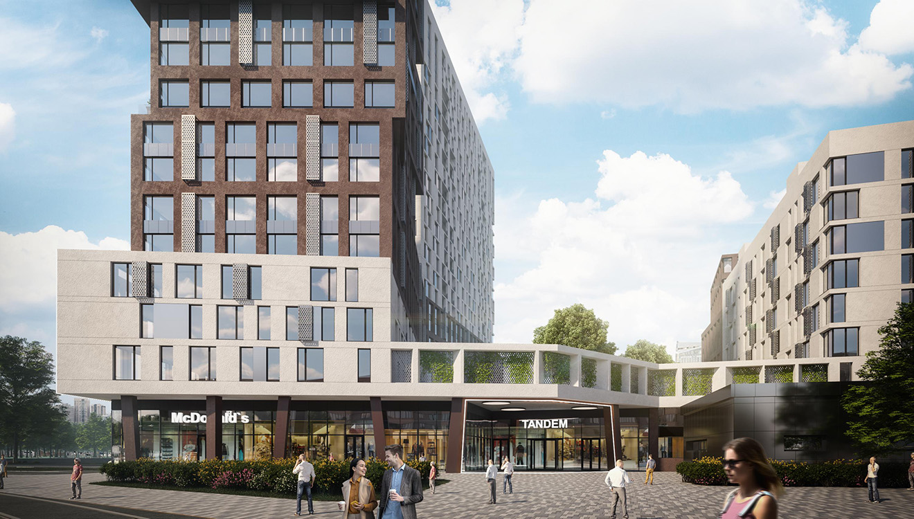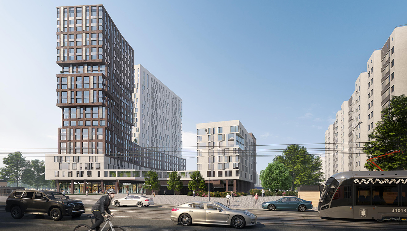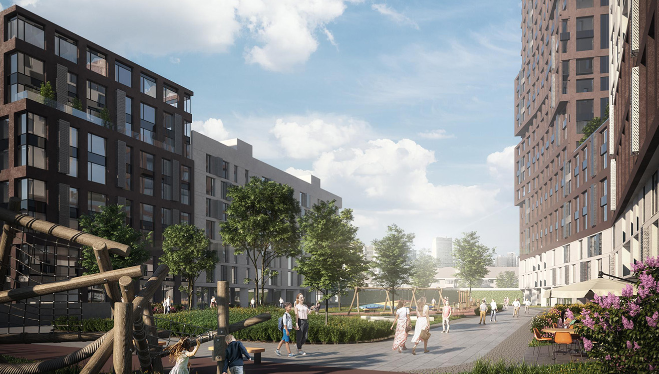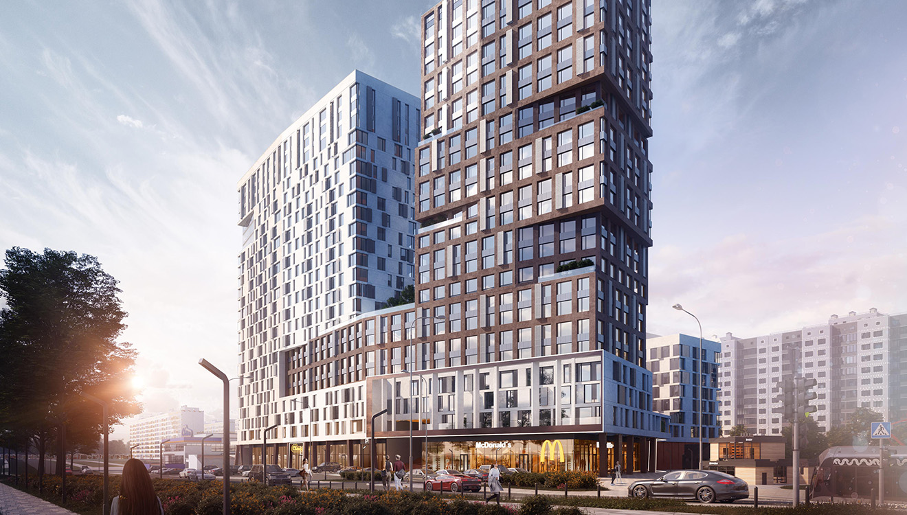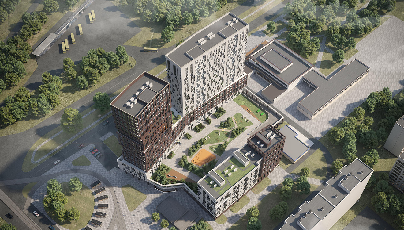 This concept of the residential complex reflects a modern approach to the urban environment, combining architectural aesthetics with functionality. The building is located in a space where natural light and harmonious views from the windows are prioritized, emphasizing openness and transparency. The facade is designed in a minimalist style with light colors, creating a clean and modern look. Spacious courtyards with landscaping and recreation areas create a comfortable place for residents to spend time outdoors. Playgrounds and walking alleys are organically integrated into the overall concept, providing comfort and convenience. The emphasis on natural materials and modern construction technologies make the complex not only aesthetically pleasing but also environmentally responsible.