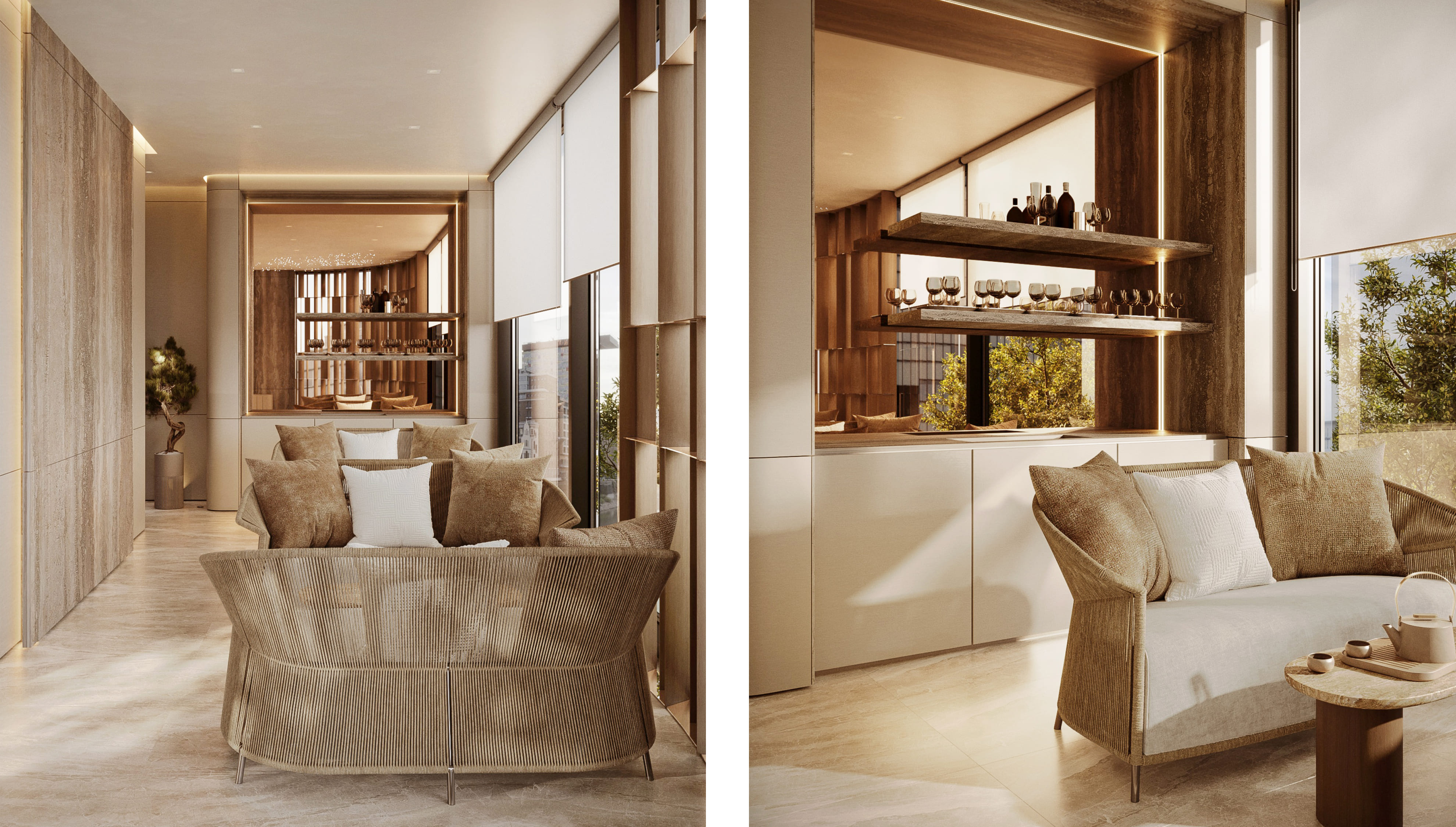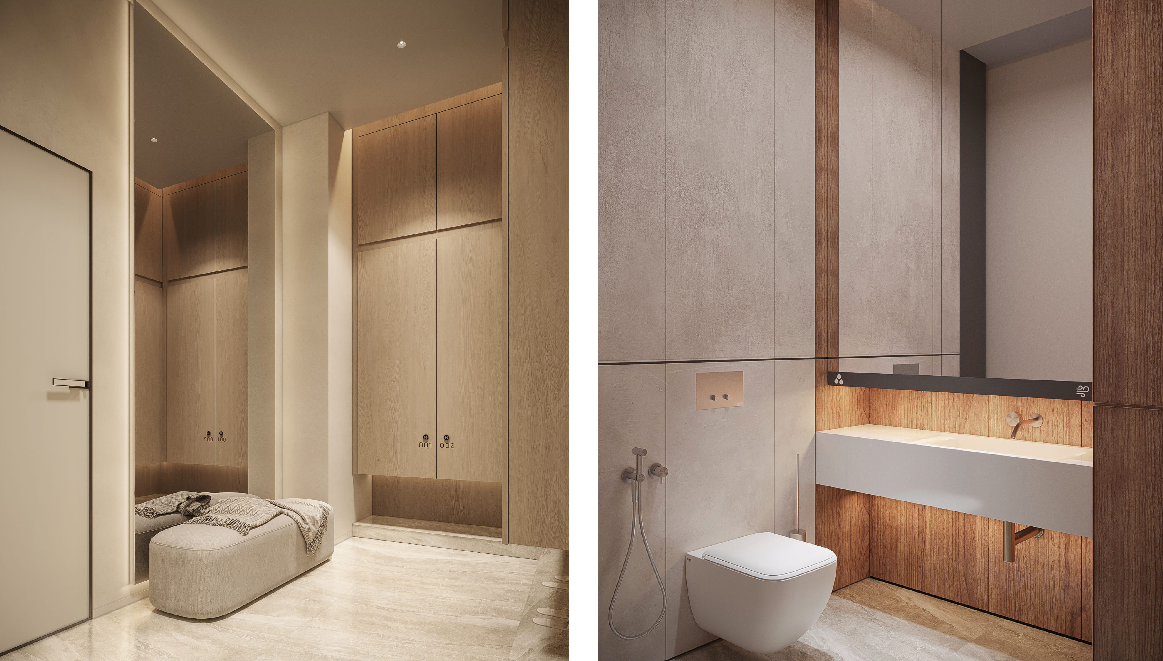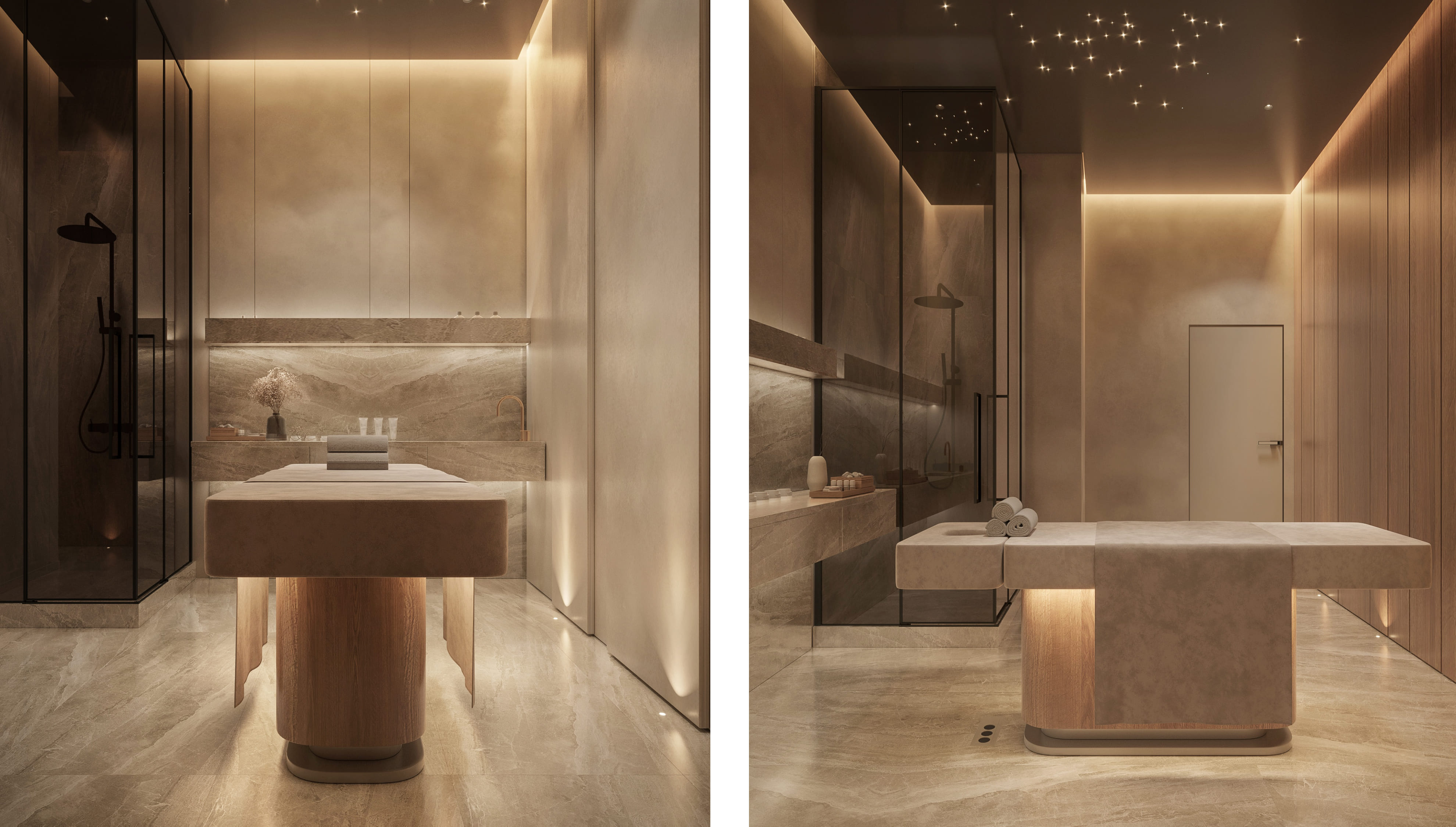 The spa complex embodies a modern design combining elegance and simplicity of minimalism. The interior is decorated in light colors that create an atmosphere of complete relaxation and peace. The main attention is paid to the use of natural materials such as wood and stone, which allows you to feel unity with nature and natural harmony. Every element of the space has been thoughtfully designed to immerse you in a state of tranquility and rejuvenation. Welcome to a world where style and nature merge into one.