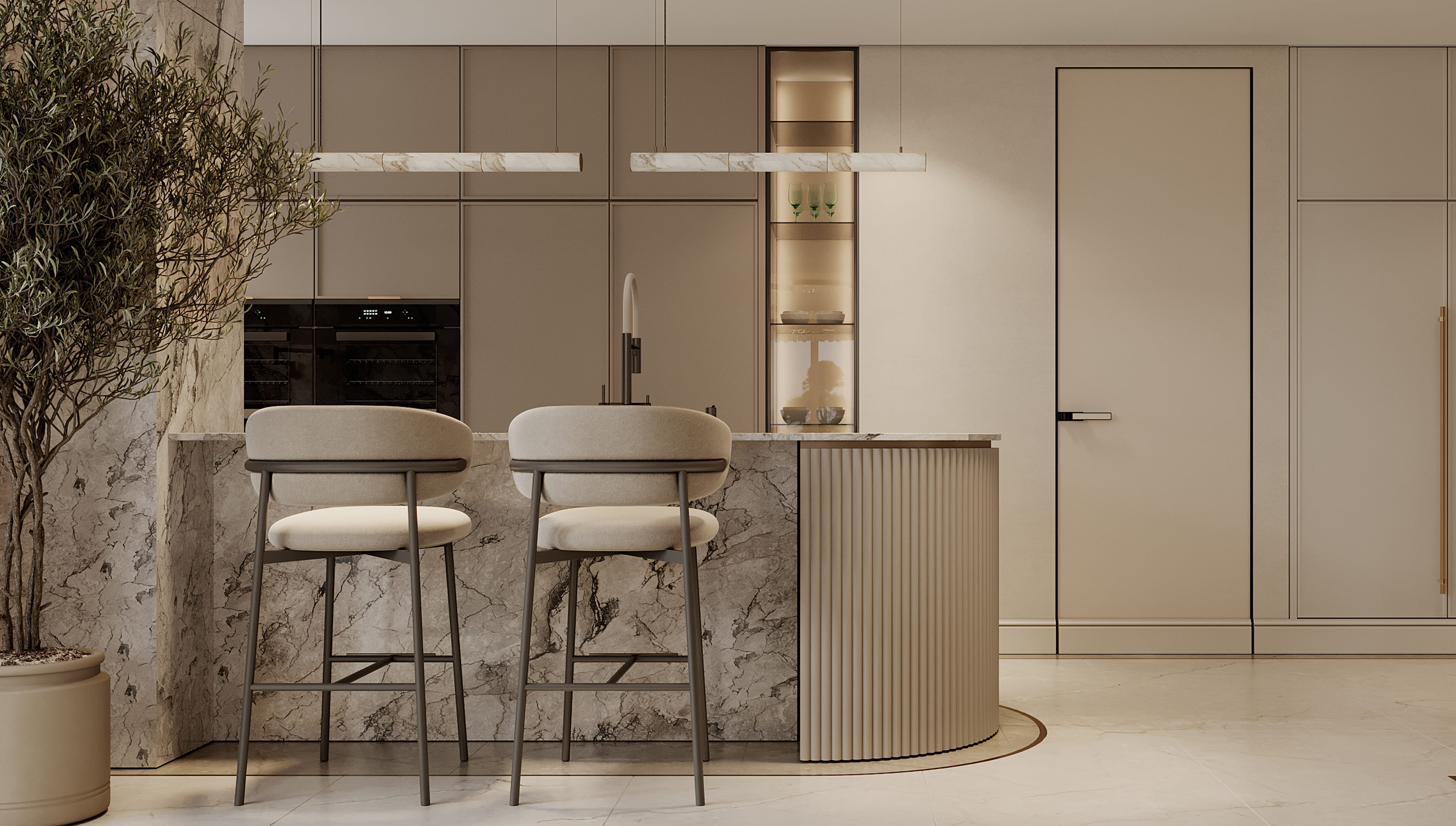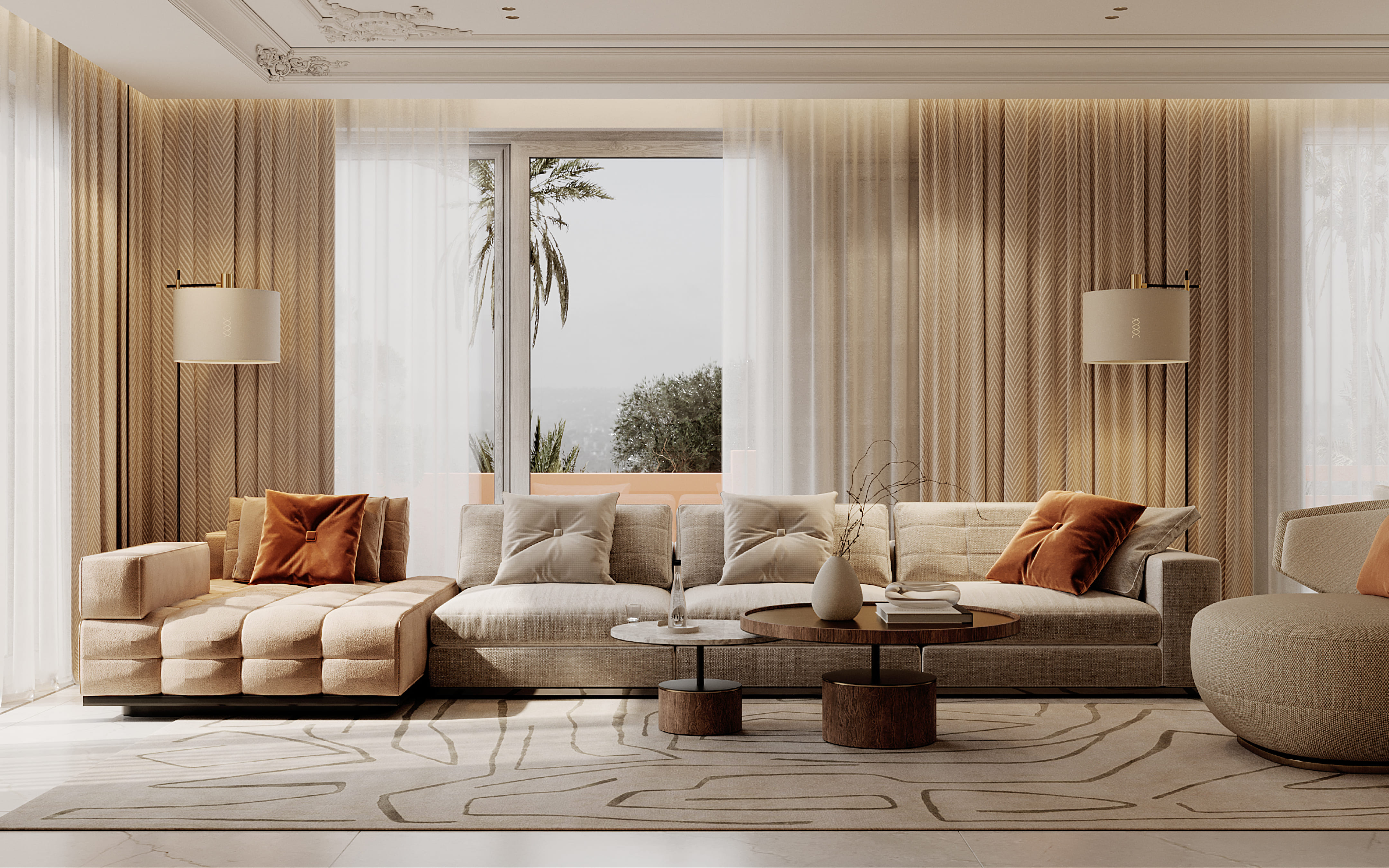 Our task was to integrate architectural elements into the interior, which we successfully achieved through a color palette and flexible forms characteristic of the spanish style.The apartments, located in a gated community with a pool, feature distinctive architecture. In th edesign, we used terracotta colors and bright accents, maintaining a modern andstylish look with contemporary materials. Additionally, we incorporated traditional spanish details, giving the interior a unique charm.